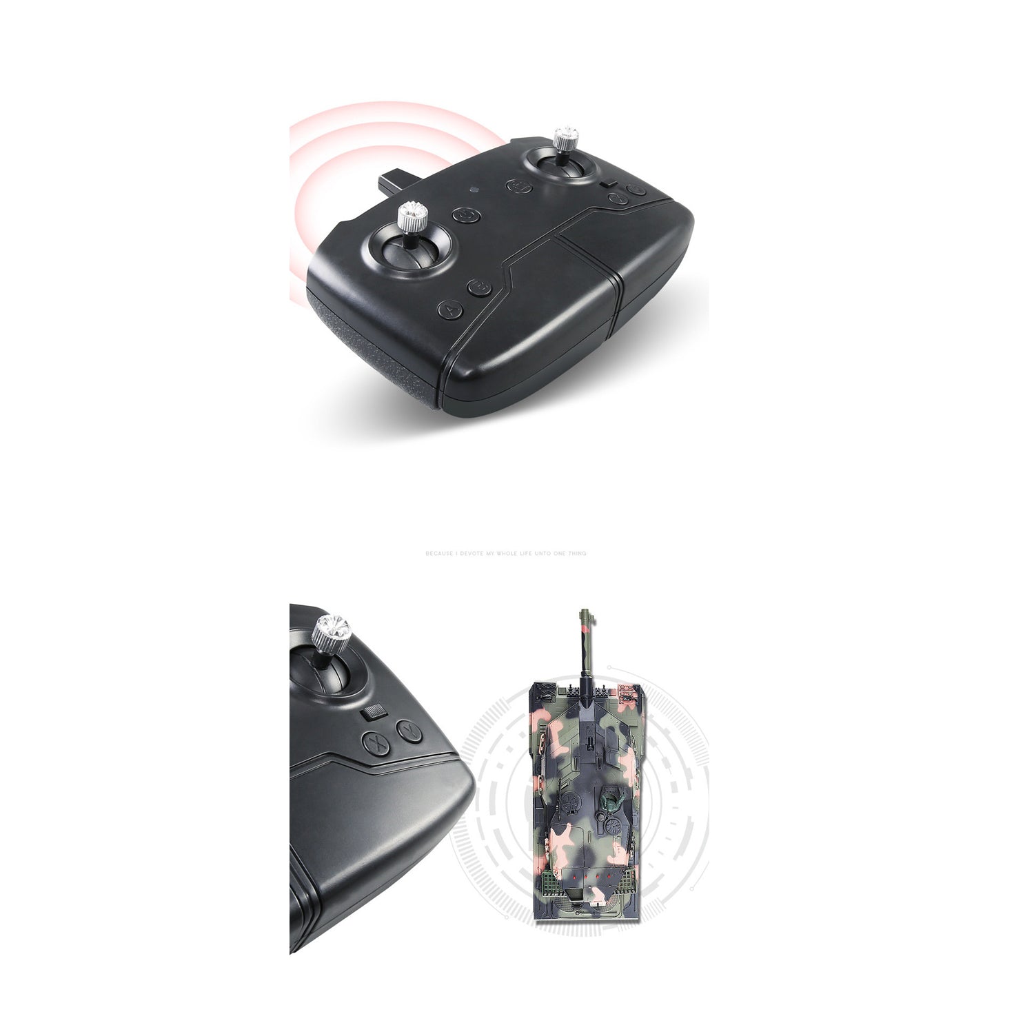 Das kraftvolle Paket verfügt über eine 2.4 GHz Steuerung. Die Motoren mit optimiertem Drehmoment verleihen den Panzern eine präzise, ruckelfreie Fahrt. Metallgetriebe mit robusten Zahnrädern und einer verbesserten Übersetzung sorgen für höhere Kraft. Durch die proportionale Steuerung können Sie den Panzer ganz langsam anfahren und die Geschwindigkeit stufenlos erhöhen. Die Panzer fahren vorwärts und rückwärts, auch jeweils mit einer Links- und Rechtsdrehung. Ebenso lässt er sich auf der Stelle links- bzw. rechtsherum drehen. Sie können die Kanone heben und senken und den Geschützturm um 320 Grad drehen (je 160 Grad pro Seite). Verschiedene Motorengeräusche und die Rauchbildung aus den Auspufftöpfen runden das realitätsnahe Erlebnis ab.