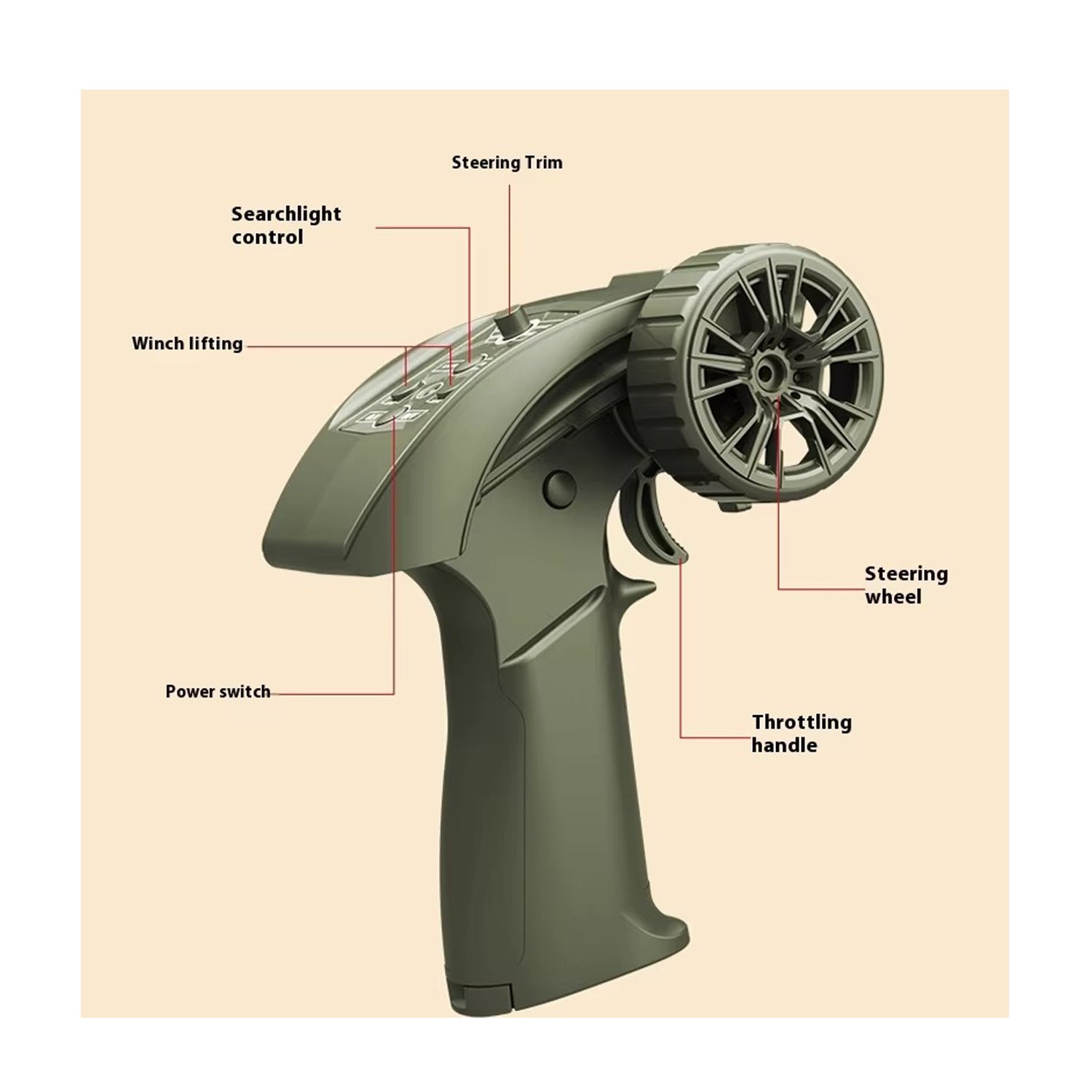 | Transmitter | Frequenz: 2.4Ghz Batterien:2xAA Batterien(nicht enthalten) |