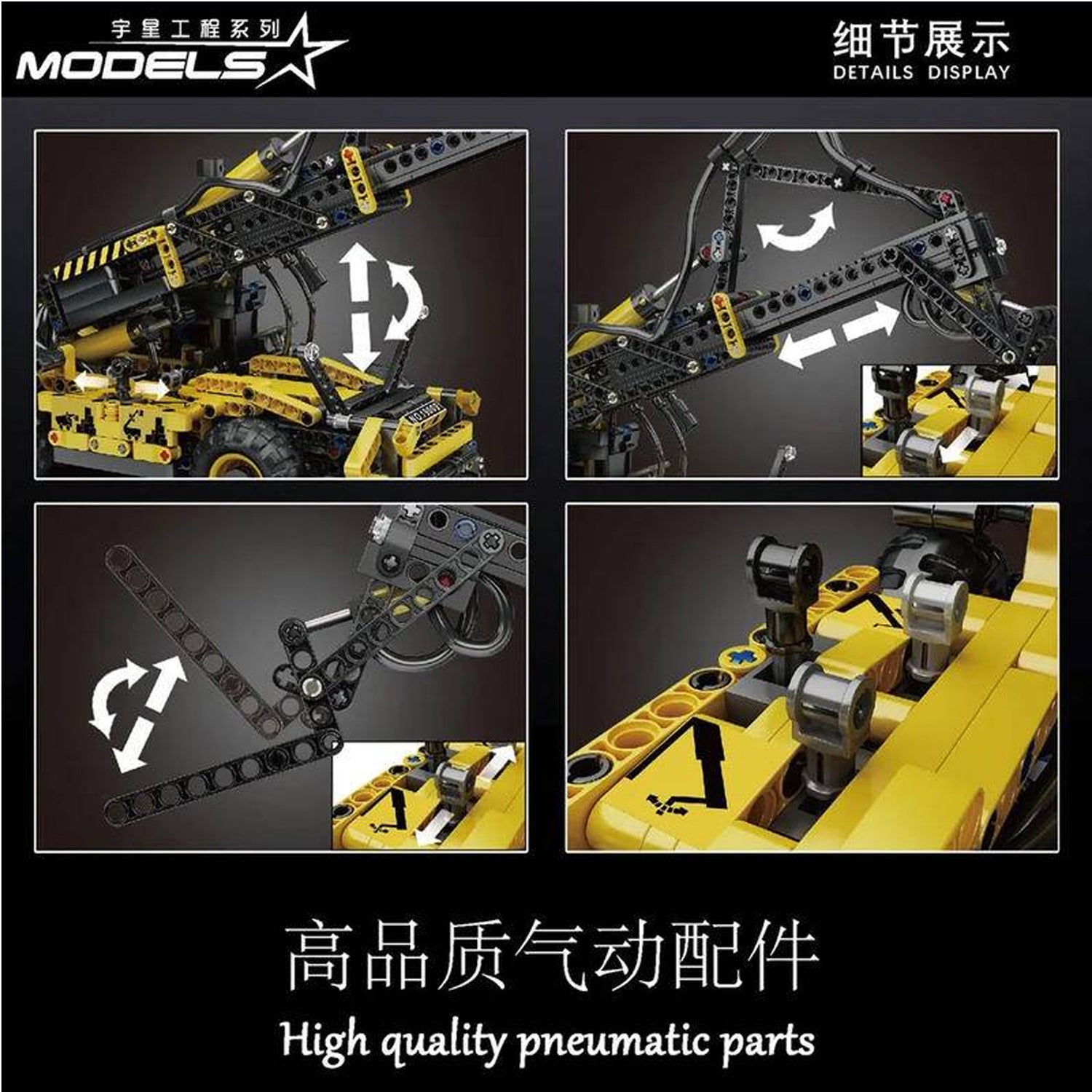 Mould King 19009 pneumatischer Teleskop-Gabelstapler Technik Bausteine
